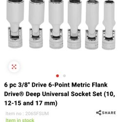 6 Pc 3/8” 6-point Metric Flank Drive Deep Universal Socket (10,12-15 And 17 mm).$375Los Angeles, CA