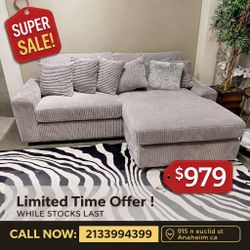 Gray Corduroy Reversible Sectional Couch $979Los Angeles, CA