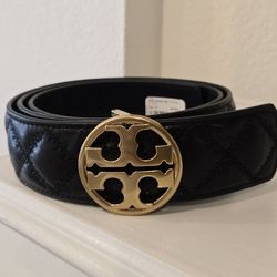 Brand New Black Tory Burch Willa Quilted Belt With Gold Logo Buckle. Size M$160Beverly Hills, CA