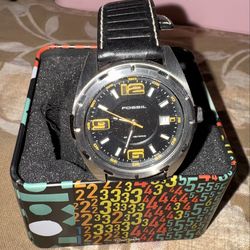 Fossil Men’s Quartz Watch Black Dial Yellow Accents Date 100M Water Resistant$45Fullerton, CA