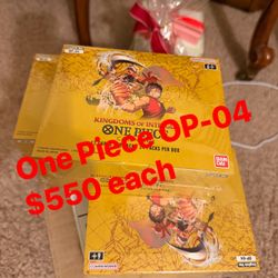 One Piece OP-04 Kingdoms of Intrigue Englisj booster boxes for sale$550Artesia, CA