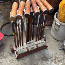 Vintage Wooden CROQUET SET by FORSTER 6-PLAYERS Rolling Cart Stand Made in USA$100Anaheim, CA