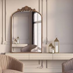 24”x36”Gold Brass Mirror for Wall,Gold Traditional Vintage Ornate Baroque Mirrors,Victorian Antique Bronze Mirrors with Full Matel Frame,Arched Mirror$55Arcadia, CA