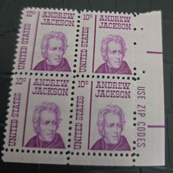 1965 Andrew Jackson Plate Block Of 4 10c Postage Stamps,$4Los Angeles, CA
