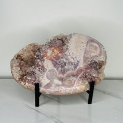 Pink Amethyst Druzy Slab with Stand | Polished Crystal Decor | 9x6” Statement Piece$200Los Angeles, CA