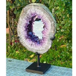 Purple Amethyst Portal Mirror on Metal Stand | 15x9” Crystal Geode Statement Decor$1,000Los Angeles, CA