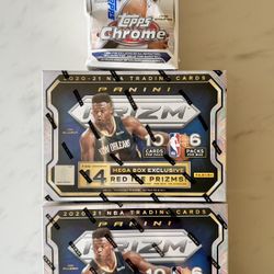 LOT of 3 Basketball - 20-21 Prizm Mega Box + 23-24 Topps Chrome Blaster - Red Ice Pink Refractor SP Trading Cards NBA Zion Wemby Panini Lebron Curry K$295Alhambra, CA