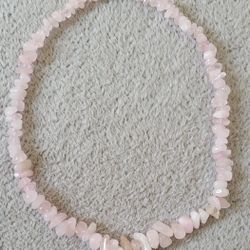 Handmade necklace with natural rose quartz gemstone chips in a light pink color.Ā $20Los Angeles, CA
