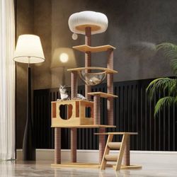 New assembled 65-Inch Multi-Pure Wood-Level Cat Tree Tower with Condo, 13 Scratching Posts, with Padded Platform Bed, Toy Balls, and Sisal Scratching,$70Artesia, CA
