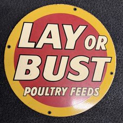 Vintage lay or bust poultry eggs chicken porcelain sign$45La Habra Heights, CA