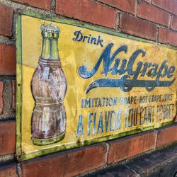 Antique Vintage Nu Grape Soda Sign Man Cave Mid Century Modern Garage Tin Sign Coca Cola 7up Pepsi$100Montebello, CA