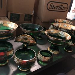 Huge set of Bohemia Chezh Republic Green Gold Painted Flowers Vase Bowl Dish Set$1,250Burbank, CA