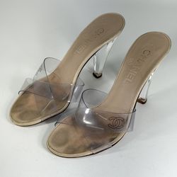 Chanel CC Logo Women's Clear PVC Slide Clear High Heels Sandals - Size 35 1/2$400Santa Ana, CA