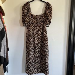 Zara Woman Puff Sleeve Leopard Cheetah Print Midi Dress Brown Black Stretch$10Compton, CA