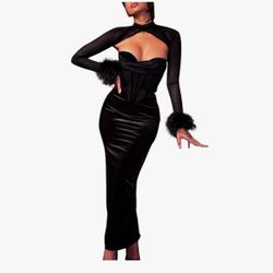Women's Long Sleeve Feather Bodycon Maxi Dress Hollow Out Velvet Mesh Dress Cocktail Party Dress$30Whittier, CA