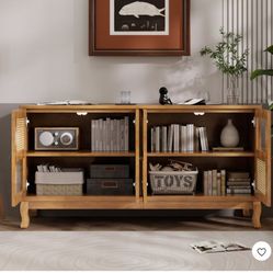 Mid-Century Retro Modern Rattan Sideboard with Glass Doors, Large Storage Space, 4-Door Cabinet Buffet for Entryway & Living Room, Brown$140Santa Ana, CA
