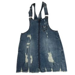 Dollhouse Denim Overall Dress Distressed Zip Front Medium Wash Juniors Size 11 NWT$18Compton, CA