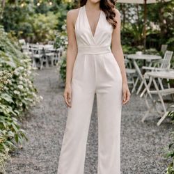 ✨ Chic White Halter Jumpsuit – Open Back, Tailored Wide-Leg Elegance | Size M$15Rosemead, CA