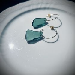 Dark teal sea glass in 18K gold plated open hoop earrings $5 FLAT FEE US SHIPPING ✈️$45Pasadena, CA