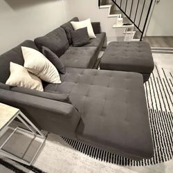 NEW LARGE U Shape Sectional Sofa Chenille Fabric Black Dark Grey Modern with Chaise and Ottoman Set Couch Big SALE Discount Furniture Warehouse Ashley$799Chino, CA