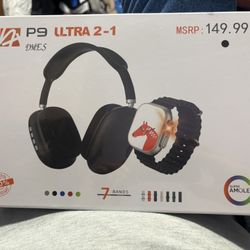 Bluetooth Headphones + Smartwatch Bundle (P9 Ultra 2-in-1) – New Sealed $35South Gate, CA