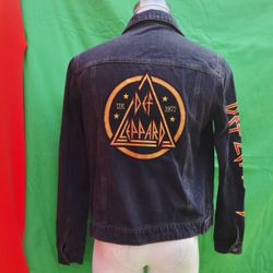 Def Leppard dark gray denim jean jacket blazer graphic patch men's size LARGE $48Long Beach, CA