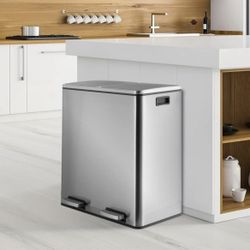 16 Gallon Dual Trash Can Recycle Bin, Stainless Steel Kitchen Step Garbage Can with Lid, Foot Pedal$50Chino, CA