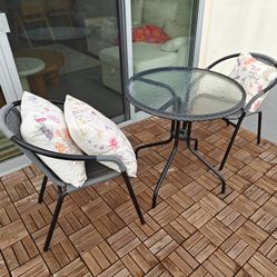 3-Piece Patio Dining Set with Round Glass Metal Table and 2 Stackable Rattan Chairs, Indoor/Outdoor Bistro Table and Chairs Set, Gray$100Los Angeles, CA
