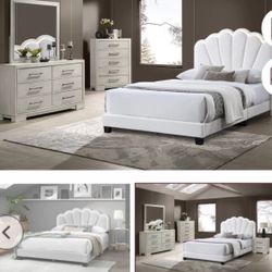 Bedroom set Queen 4 pc White finish, Off White Fabric Upholstery fabric. New Especial price $1,870Irvine, CA