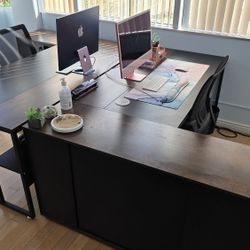 Desk l shape black espresso with drawers 60”x60”$450Costa Mesa, CA