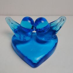 Ron Ray Blue Art Glass Love Birds Kissing On A Heart Collectible Figurine $25Anaheim, CA