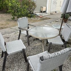 Patio Furniture Set - Outdoor table with umbrella and four chairs.$350Arcadia, CA