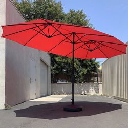 (NEW) $130 Large 15FT Double Sided Outdoor Umbrella w/ 65 LBS Plastic Weight Base (Red/Gray)$130Rosemead, CA