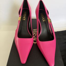 Authentic Versace Pink Leather Heels Size 37.5 (US 7β7.5) w/ Box Medusa $389Los Angeles, CA