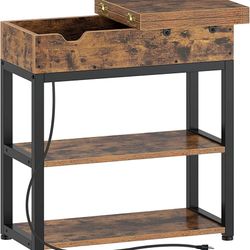 Rolanstar Side Table with Charging Station; Narrow side table with storage shelf, USB ports, and power outlets for small spaces; nightstand for sofa, $50Chino, CA