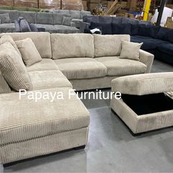 New! 106” Plush Sage Green Sectional, Sectional And Storage Ottoman, Sectionals, Sofa, Couch, Beige Couch, green Couch, Corduroy Sectional, plush Sofa$499Anaheim, CA