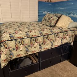 Full Size Solid Wood Bed Frame With 6 Drawers And Under Bed Storage Cabinet$200Costa Mesa, CA
