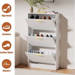 118 JOZZBY Shoe Cabinet Storage with 3 Flip Drawers for Entryway, White Slim Freestanding Modern Narrow Shoe Organizer Rack Cabinet for Hallway, Livin$69Irvine, CA