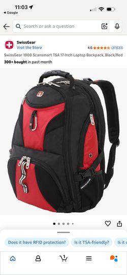 SwissGear 1900 ScanSmart TSA Laptop Backpack - Fits 17-Inch Laptop - Black/Red Travel Bag$20Chino Hills, CA