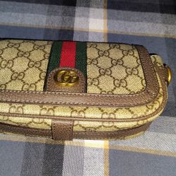 Gucci Ophidia mini bag in beige and ebony GG Supreme canvas with brown leather trim and gold-toned hardware. $800Toluca, IL