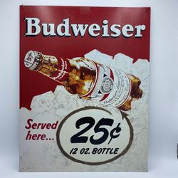 New Budweiser Served Here 25 Cent Bottles Decorative Metal Tin Sign Beer$20Peoria, IL