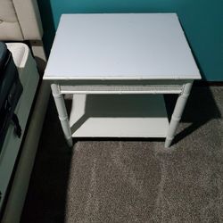 White Side Table With Ratan And Wood, Nice$40Independence, KS