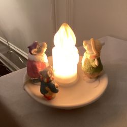 Decorative candle night light with mouse figurines (1989 Terragraphics) 4.5”T x 5”W toggle switch$15Lexington, KY
