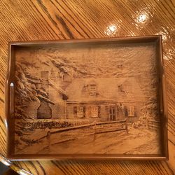 Vintage House of Lloyd Wood Tray with wood-burned winter cabin scene 15” x 11 x 1.5” (perfect condition)$15Lexington, KY