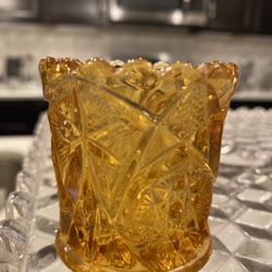 Toothpick Holder Kemple Yutec Pattern Honey Amber 2” Vintage$10Lexington, KY