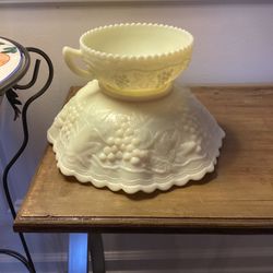(SET) Imperial Lennox “milk glass” or “custard” glass grape and leaf pattern bowl 9.5” x 3.5 deep + “nappy” bowl6”W x 2.5” deep$30Lexington, KY