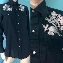 Vtg 70s Chute 1 Men’s Black w/White Embroidery Pearl Snaps Western Shirt S$31Paris, KY