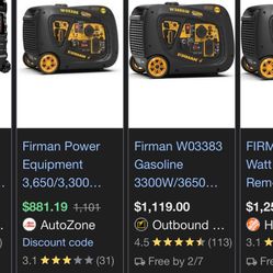 Firman W03(contact info removed)/3650 Watt Generator $750Lexington, KY
