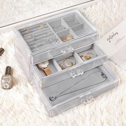 🎀 $12 Brand New In Box Clear Jewelry Box Acrylic Velvet Jewelry Organizer for Women with 3 Drawers$12Malden, MA