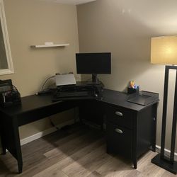 Black L-Shaped Corner Desk (60” x 60”) w/ Rising Desk Platforms – Great Condition$100Hudson, MA